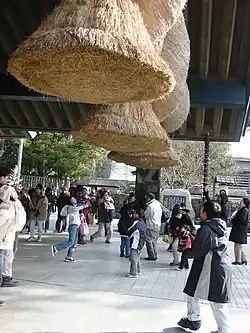 Der Legende nach geht ein Wunsch in Erfüllung, wenn eine hochgeworfene Münze in einem der riesigen, entgegen der Norm gegen den Uhrzeigersinn gedrehten Shimenawa steckenbleibt