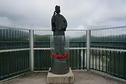 In der Mitte der Brücke wurde eine zweieinhalb Meter hohe Bronzestatue des heiligen Johann von Nepomuk aufgestellt, der als Brückenheiliger gilt.