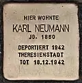 | Josef Bloemendal | 1907–1944 | Kaufmann | Tod im KZ Auschwitz | Theresienstraße 10 |