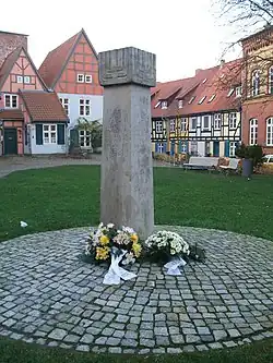 Die Judenstele, die am 1. November 1988 in der Judenstraße/Ecke Apollonienmarkt eingeweiht worden war, wurde nach wiederholten Beschädigungen durch Schmierereien 1992 in den Hof des Johannisklosters umgesetzt.