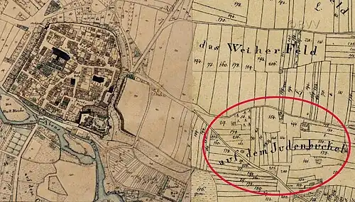Nach der Vertreibung der Juden in der zweiten Hälfte des 15. Jahrhunderts wurde der Friedhof vermutlich zerstört und die Grabsteine verbaut.