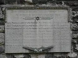 Außerhalb auf dem Stadtfriedhof neben der Kapelle befindet sich eine Gedenkstätte für jüdische Zwangsarbeiter mit Gedenkplatte. Die Inschrift auf der Tafel lautet: „Weil sie Juden waren, wurden sie aus ihrer Heimat verschleppt, um für ein unmenschliches System zu arbeiten und zu sterben (1944-1945).“