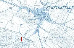 Im Messtischblatt von 1880 (Preußische Landesaufnahme) ist der Friedhof südwestlich des Ortes im nahe gelegenen Wald eingezeichnet (siehe Karte). Diese jüdischen Friedhöfe wurden mit „Begräbnisplatz“ und einem „L“ statt einem † in den Karten signiert. Sie lagen in der Regel weit außerhalb der Orte oder an Stellen mit nur wirtschaftlicher Bedeutung, z. B. Scheunenviertel oder wie hier der nahe gelegenen Ziegelei.