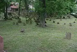 Der Friedhof wurde vermutlich im späten Mittelalter angelegt. Die ältesten datierbaren Grabsteine stammen aus dem 15. Jahrhundert,[2] nach anderen Angaben aus dem Jahr 1616.[3] Viele der älteren Steine sind eingesunken oder deren Inschrift verwittert. Erhaltene und gut lesbare Inschriften liegen ab der Mitte des 18. Jahrhunderts vor.