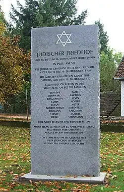 Der Friedhof ist bereits 1755, zwei Jahre nach der Ansiedlung der ersten Schutzjuden „vor dem Eldenthore“ angelegt worden. Da es nach dem LGGV den Juden verboten war, Grundbesitz zu erwerben[1], war das zunächst sehr kleine Grundstück von lediglich 49 m² gegen eine Pacht von 1 Reichstaler an die Stadtkasse Plau gepachtet worden.[2] 1783, 1807, 1833 und 1889 erfolgten Erweiterungen. Nachdem sich die jüdische Gemeinde aufgrund starker Abwanderung in größere Städte rasant verkleinerte wurde sie mit Datum vom 3. Juli 1922 vom Israelitischen Oberrat aufgelöst und der Friedhof dem landesweiten Dachverband der jüdischen Gemeinden, der Israelitischen Landesgemeinde Mecklenburg-Schwerin, übertragen.[3] Seit Anfang 1939 lebten keine Juden mehr in Plau und der Friedhof verwilderte. Das Mecklenburgische Staatsministerium erteilte im Juli 1940 die Genehmigung zur Einebnung des Friedhofes im Ermessen des Gesundheitsamtes Parchim. In dieser Zeit stand der Friedhof in Eigentum der Reichsvereinigung der Juden in Deutschland. Die Stadt erwarb mit Vertrag vom 7. April 1941 das Grundstück zum Preis von 90 Reichsmark.[4] Die Einebnung der Gräber unterblieb jedoch. Es verschwanden in der Folge jedoch alle eisernen Grabgitter und die Felder des ebenfalls eisernen Zaunes. 1947 konnte der Friedhof wieder instand gesetzt werden. Die letzte Beisetzung (Dr. Hermann Hirsch) fand 1951 statt. Die Rückübertragung an den Zentralrat der Juden in Deutschland erfolgte nach 1990.