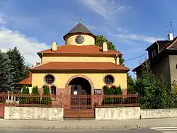 Die ehemalige Trauerhalle, ein synagogenähnliches Gebäude, wird heute von den Pfingstlern als Gottesdienstraum genutzt.