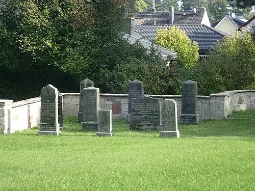 Nach 1945 wurde der Friedhof wiederhergestellt und noch vorhandene Stücke der Grabsteine wurden zu einer Mauer und einem Gedenkstein zusammengesetzt. Diese Gedenkstätte wurde am 5. September 1948 eingeweiht.