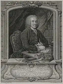 - ↑ Verzeichniß der Namen aller derjenigen, welche dem seligen Jürgen Elert Kruse, gewesenen Schulhalter zu St. Nicolai in Hamburg (erwählt 1733, den 19. November), welcher gebohren in Hamburg 1709, den 27. November und gestorben 1775, am 30. Januar, seines Alters 65 Jahre, 2 Monat und 3 Tage, zur Unterweisung anvertrauet worden, mit Anzeige der Jahreszahl, in welchem Jahre dieselben bey ihm den Anfang gemacht. Auf Ersuchen vieler guter Freunde und gewesenen Schüler nach alphabetischer Ordnung abgefasset, und dem Druck übergeben von dessen sämmtlichen Erben. Dieterich Anton Harmsen, Hamburg 1775 (Digitalisat).