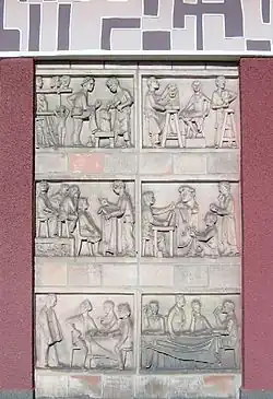 - Relief mit Szenen aus dem Hochschulleben, 1956, am Eingang der Kunsthochschule Berlin-Weißensee