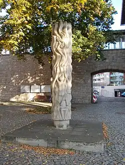 - Mahnmal für die Opfer der britischen Luftangriffe auf Nordhausen, 1969, am Rathaus von Nordhausen