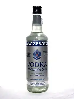 Aufkleber auf dem Baczewski-Wodka verglichen sich mit dem Wodka von Smirnoff, dessen Fabrik sich ebenfalls in Lemberg befand.[1] Die bekanntesten Produkte von Baczewski wurden in der Zeit Wodka „Monopolowa“ und „Perła“.