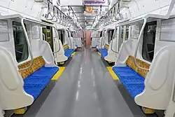 Alle Züge der Baureihe sind für den Einmannbetrieb ohne Zugbegleiter mit Kameras ausgerüstet, die den Türbereich überwachen.[1] Da die Züge relativ kurz sind, gibt es an den Enden einen Fahrgastübergang. Wie in der Region Tokio üblich, sind die Triebzüge mit vier halbautomatischen Taschenschiebetüren pro Wagen und Seite ausgerüstet. Es ist überwiegend Längsbestuhlung vorhanden.