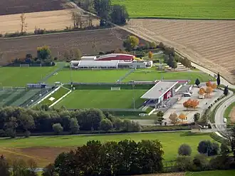 Die Stadiontribüne bietet mehr als 600 überdachte Sitzplätze und 1800 Stehplätze. Die Anlage umfasst neben dem Stadion mit dem Hauptspielfeld noch drei Trainingsplätze, davon ein Kunstrasenplatz, und einen Tormanntrainingsplatz.