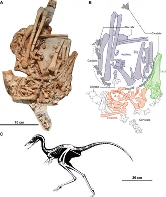 - ↑ G. F. Funston, S. E. Mendonca, P. J. Currie, R. Barsbold: Oviraptorosaur anatomy, diversity and ecology in the Nemegt Basin. In: Palaeogeography, Palaeoclimatology, Palaeoecology (= THE LATE CRETACEOUS NEMEGT ECOSYSTEM: DIVERSITY, ECOLOGY, AND GEOLOGICAL SIGNATURE). 494. Jahrgang, 1. April 2018, ISSN 0031-0182, S. 101–120, doi:10.1016/j.palaeo.2017.10.023, bibcode:2018PPP...494..101F (englisch, sciencedirect.com).