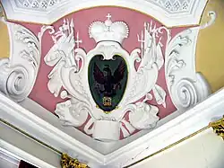 Die Muldendecke des Roten-Adler-Saals zieren Stuck und in den Ecken Kartuschen mit dem Adlersymbol. Über dem geschwungenen Sandsteinkamin befindet sich ein Emblem von 1712. Der Saal befindet sich (2012) innerhalb der sozialen Einrichtung und kann zu besonderen Anlässen genutzt und besichtigt werden.