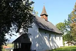 Die 1454 erstmals urkundlich genannte Kirche ist ein kleiner, gotischer Bau mit einem Dachreiter und einer hölzernen Vorlaube. An der Nordseite befindet sich ein spätgotisches Christophorusfresko.