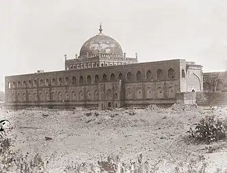 Die Moschee gehört zu den im persisch-indischen Raum verbreiteten Hofmoscheen und hat eine Gesamtgrundfläche von ca. 70 × 170 m, wovon der eigentliche Moscheesaal nur etwa ein Drittel einnimmt. Die Hoffläche (sahn) ist umgeben von einer überdachten Galerie (riwaq), die durch zwei Eingänge unterbrochen wird; der von Aurangzeb in Auftrag gegebene dritte Eingang übertrifft die beiden anderen an Größe bei weitem, steht aber isoliert am Ostrand der Hoffläche. Etwa in der Mitte des Hofes befindet sich ein Brunnenbecken für die vom Koran (Sure 5,6) vorgeschriebenen Waschungen (Wudū').