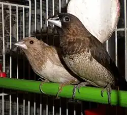 Das Japanische Mövchen ist eine domestizierte Form des Spitzschwanz-Bronzemännchens (Lonchura striata).