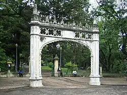 Der Park erhielt immer mehr Zulauf, sodass dieser 1897 einen Zaun und ein großes Tor erhielt. Zum 400. Todestag von Vasco da Gama 1924 ließ der Stadtkommandant Victor Hugo de Azeredo Coutinho ein im manuelinischen Stil gehaltenes Eingangstor für den Park errichten.[1]