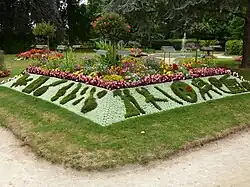 Mit dem Entwurf wurde der pensionierte Pionier-Offizier und Aquarellmaler Adéle Sebastian Minel beauftragt. Es entstanden italienische Terrassen, Baumgruppen im englischen Stil, ein Labyrinth und Wasserspiele. Zu Ehren des Gebers wurde ein Obelisk aufgestellt. Der Garten wurde im Jahre 1855 als einer der ersten seiner Art fertiggestellt und wurde zum „Vorbild öffentlicher Gärten in der Normandie des Zweiten Kaiserreiches“ im 19. Jahrhundert.[1] Seltene Bäume, üppig blühende Büsche, kunstvolle Blumenmosaiken und Lichtspiele machen aus diesem Garten einen der schönsten der Basse-Normandie. Er wurde im Jahre 1992 in die Liste der nationalen Denkmäler Frankreichs aufgenommen.[1]
