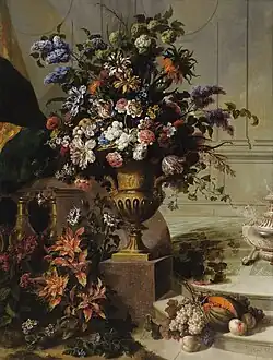 - ↑ Jean-Baptiste Monnoyer: A bouquet of flowers in a gilded bronze urn on a porphyry base in an architectural setting, in Auktion bei Sotheby’s, Lot 39 (englisch; Abruf am 30. Juni 2022)