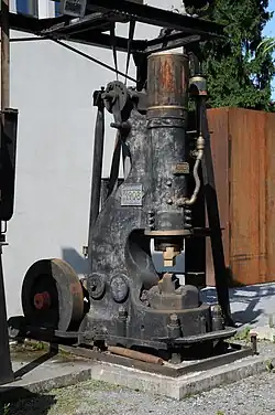 Transmissionsbetriebener Luftfederhammer Bêché, 1908