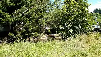 - Im Norden grenzt kurz das Einzugsgebiet des noch höher zur Wiese entwässernden Biegenbachs an;