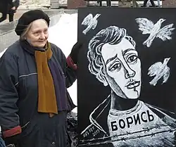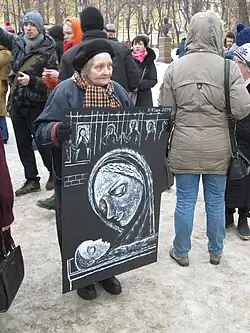 - ↑ Художницу-пенсионера с антивоенными плакатами обругали в день Победы в Петербурге. In: echo.msk.ru. 11. Mai 2017, abgerufen am 3. März 2022 (russisch).