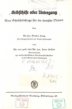- mit Bruno Jung: Selbsthilfe oder Untergang. Eine Schicksalsfrage für die deutsche Nation. Stalling, Oldenburg 1931.