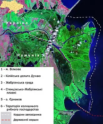 Die Insel liegt im Kilijaarm im Rajon Ismajil der Oblast Odessa an der rumänischen Grenze und im Ramsar-Gebiet Kilijaarm nordwestlich der Stadt Wylkowe. Die Insel besitzt eine Fläche von 23 km²[1], ist etwa 10 Kilometer lang und 3 Kilometer, an der breitesten Stelle fast vier Kilometer breit.[2][3]