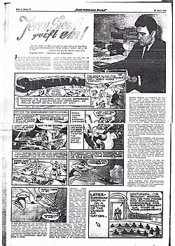 1937/1938 gelang es ihnen schließlich, ihre Figur an den Verlag National Periodicals (später Detective Comics genannt) zu verkaufen, der zu dieser Zeit nach Material für die neue Serie Action Comics suchte. Für den Verkauf der Rechte an ihrer Figur erhielten sie 130 Dollar.[3] Da National Periodicals unter großem Druck stand, genug Comic-Stoff zusammenzubekommen, um den zeitgerechten Start der Action Comics gewährleisten zu können – der für Mitte 1938 vorgesehen war –, entschloss sich Whitney Ellsworth, der Verlagsleiter, schließlich Siegel und Shusters Superman-Konzept, das bislang immer als „kindisch“ abgelehnt worden war, den Zuschlag zu geben und es zur Lead-Reihe der Action Comics zu wählen.