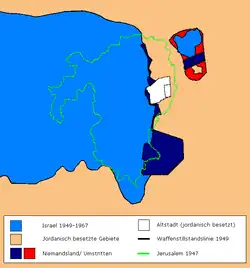 Seit Beginn des Nahostkonflikts war Jerusalem einer der zentralen Streitpunkte. Vertreter jüdischer und arabischer Bevölkerungsgruppen beanspruchten die Stadt oder zumindest Teile davon als Hauptstadt Israels beziehungsweise Palästinas. Deshalb sah der UN-Teilungsplan für Palästina von 1947 vor, einen jüdischen und einen arabischen Staat zu schaffen und Jerusalem unter internationale Verwaltung zu stellen. Die Stadt sollte als corpus separatum von den UN durch einen Treuhänderrat und einen Gouverneur regiert werden. Lokaler Gesetzgeber sollte ein Rat sein, den die Stadtbewohner nach den Regeln der Verhältniswahl wählen sollten. Gegen seine Entscheidungen – sofern sie den Status der Stadt beträfen – behielten sich die UN ein Vetorecht vor. Die Stadt sollte demilitarisiert, neutral und von einer aus ausländischen Truppen rekrutierten Polizei geschützt werden. Sie sollte Teil eines gemeinsamen Handelsraums sein, den Bürger beider Staaten betreten und bewohnen durften. So sollte der gleichberechtigte Zugang zu den heiligen Stätten der drei Weltreligionen gesichert werden.