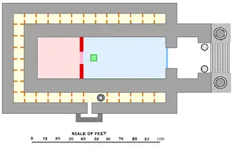 - den mit Räucheraltar, Leuchter und Schaubrottisch eingerichteten Innenraum, dies ist der „Arbeitsplatz des Hohenpriesters“.[12]