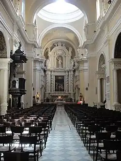 Das Kircheninnere ist in Dorischer Ordnung strukturiert. Der Grundriss folgt wie viele Jesuitenkirchen der Kirche Il Gesù in Rom. Die frühbarocke Fassade erscheint unvollständig.