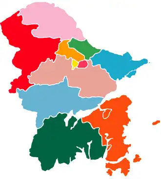 Auf Gemeindeebene setzt sich der Stadtbezirk aus acht Straßenvierteln zusammen.