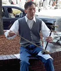 - ↑ Die huihu (徽胡, huīhú) ist das wichtigste Begleitinstrument der Hui-Oper (徽劇 / 徽剧, Huījù) bzw. Huizhou-Oper, eine der lokalen Operngattungen in der Provinz Anhui, China.