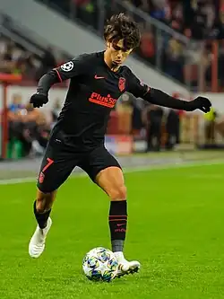 Zur Saison 2019/20 wechselte Félix in die spanische Primera División zu Atlético Madrid. Er unterschrieb einen Vertrag mit einer Laufzeit bis zum 30. Juni 2026[8] und soll pro Jahr 7 Mio. Euro verdienen.[1] Die Ausstiegsklausel soll bei 120 Millionen Euro gelegen haben, weshalb sich beide Vereine auf eine Ratenzahlung einigten, woraufhin Atlético 6 Millionen Euro extra bezahlte.[9] Mit einer Gesamtablösesumme in Höhe von 126 Millionen Euro wäre Félix einer der teuersten Transfers der Fußballgeschichte. Im November 2019 gewann Félix als erst zweiter Portugiese nach Renato Sanches vor den Bundesligastürmern Jadon Sancho und Kai Havertz den Golden Boy als bester U21-Spieler des Jahres in Europa.[10] Bis zu diesem Zeitpunkt hatte Félix drei Tore geschossen und eine Vorlage geleistet, nachdem ihn Trainer Diego Simeone hinter den Angreifern Álvaro Morata und Diego Costa hatte spielen lassen. Im weiteren Saisonverlauf folgten acht weitere direkte Torbeteiligungen, welche Atlético unter anderem das Erreichen des Champions-League-Viertelfinales ermöglichten oder einen Zähler gegen den Ligakonkurrenten FC Sevilla sicherten. Der Angreifer hatte laut dem spanischen Fachmagazin Marca Probleme damit, Simeones Spielsystem zu verinnerlichen. Das frühe Pressing, in das auch die Offensivakteure eingebunden wurden, kostete ihn für sein Angriffsspiel notwendige Kräfte, woraufhin er häufiger keine Torchancen einleiten konnte. Die Sportzeitung bezeichnete ihn daraufhin als einen der „enttäuschendsten Transfers der Saison“.[2][11] In der Spielzeit 2020/21 steigerten sich Félix’ statistische Werte, allerdings waren seine vier Mitspieler Luis Suárez, Marcos Llorente, Ángel Correa und Yannick Carrasco alle an mehreren Mannschaftstreffern beteiligt als er. Der junge Portugiese hatte seinerseits aber trotz allem einen entscheidenden Anteil an der Gesamtsaisonleistung Atléticos gehabt. So schoss er beim 3:2 gegen Salzburg in der Champions-League-Gruppenphase zwei Tore, gegen den FC Bayern München traf er ebenfalls, als man sich 1:1 trennte; schlussendlich landeten die Spanier so noch vor Salzburg auf Platz 2. Auch in der Liga sicherten Félix’ Tore und Torvorlagen wichtige Zähler, etwa gegen Osasuna (3:1, zwei Tore) oder Valencia (3:1, je ein Tor und eine Vorlage). Am Saisonende holten die Madrilenen schließlich mit zwei Zählern Vorsprung auf den Stadtrivalen Real seit sieben Jahren wieder einen Landesmeistertitel.