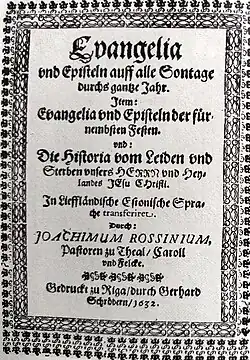 - ↑ Valve-Liivi Kingisepp, Külli Habicht, Külli Prillop: Joachim Rossihniuse kirikumanuaalide leksika. Tartu: Tartu Ülikool 2002, S. 13.