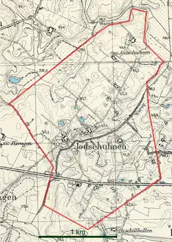 Die Gemeinde Jodschuhnen auf zwei Messtischblättern von 1936 und 1937
