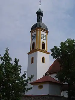 - Röckenhofen, Pfarrkirche St. Ägidius (1693 Langhaus, Turm)