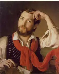 - Selbstbildnis mit rotem Schal (Linz, Oberösterreichisches Landesmuseum), 1842, Öl auf Leinwand