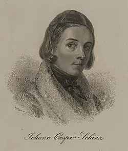 - Schinz, Johann Kaspar. In: Hans Vollmer (Hrsg.): Allgemeines Lexikon der Bildenden Künstler von der Antike bis zur Gegenwart. Begründet von Ulrich Thieme und Felix Becker. Band 30: Scheffel–Siemerding. E. A. Seemann, Leipzig 1936, S. 84 (biblos.pk.edu.pl).