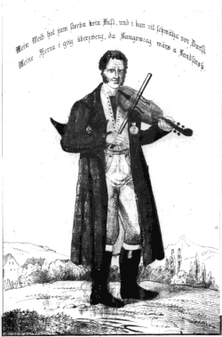 Johann David Pfeffer wurde als letztes von 14 Kindern am 11. Januar 1769 in Stetten geboren.[2] Er wurde als der „Pfeffer von Stetten“ bekannt. Der Vater war Schreiner. Er erlernte bei einem Onkel das Geigenspiel.