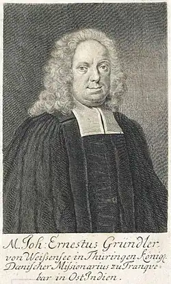 - ↑ Arno Lehmann: Gründler, Johann Ernst. In: Neue Deutsche Biographie (NDB). Band 7, Duncker & Humblot, Berlin 1966, ISBN 3-428-00188-5, S. 189 f. (Digitalisat).