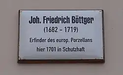 - ↑ Staatsarchiv Dresden; „Acta. Varia die Böttchersche und andere die Erfindung des Porcellains betreffenden Papiere“ Loc.1340