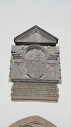Auf der zeitgenössischen Gedenktafel zum Neubau der Kirche wird er als Komtur von Würzburg, Schleusingen und Weißensee sowie als Kaiserlicher Rat bezeichnet.