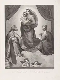 1816 vollendete er den Stich der Sixtinischen Madonna, der bald weit verbreitet war. Hermann Grimm urteilte über dieses Werk: „Nur einem einzigen Kupferstecher ist es gelungen, dem Gemälde nahe zu kommen, Friedrich Müller, dessen Werk als das Beste gilt, was die neuere Kupferstichkunst überhaupt hervorgebracht hat.“[8]