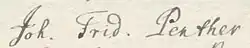 - ↑ UniA GOE, Kur. 5737: Penther, Prof. Dr. Johann Friedrich (Professor der Naturwissenschaften). Laufzeit 10.07.1736-04.10.1749 (Nachweis auf arcinsys.niedersachsen.de, abgerufen am 1. Mai 2023). - Vgl. auch Thomas Appel: Göttinger Künstlerlexikon. Maler – Grafiker – Bildhauer – Architekten: vom 14. Jahrhundert bis zur Mitte des 20. Jahrhunderts. Universitätsverlag Göttingen, Göttingen 2022, ISBN 978-3-86395-504-5, S. 575, mit Hinweis auf UniA GOE, Nr. 9158: Das Gehalt der Witwe des Prof Dr Johann Friedrich Penther, 1749–1785.