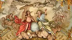 Wallfahrtskirche Maria Steinbach: Gottvater und Sohn einer Dreifaltigkeitsdarstellung über dem Hochaltar