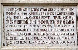 - ↑ Mitglieder der Vorgängerakademien. Johann Gottlieb Friedrich von Bohnenberger. Berlin-Brandenburgische Akademie der Wissenschaften, abgerufen am 24. Februar 2015.